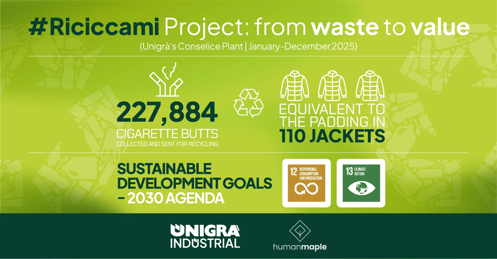 Unigrà has collected around 227,884 cigarette butts, equivalent to the padding used in 110 winter jackets. Unigrà’s collection and recycling of cigarette butts in 2025 has helped prevent the potential littering of materials in the environment thanks to an organised collection system.A Strategy Built on Everyday, Impactful Actions