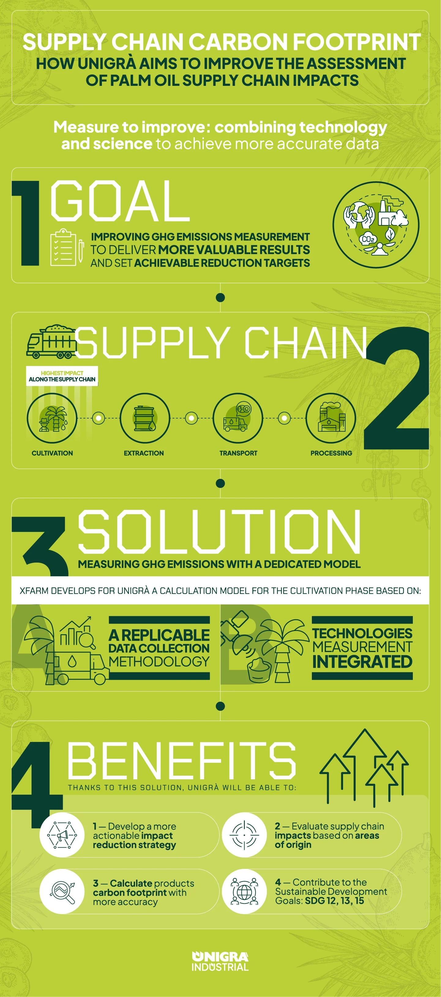 You cannot improve what you do not measure: only by accurately calculating one’s impact is it possible to set concrete goals and identify the most effective solutions to achieve them. This is the starting point for the new project through which Unigrà intends to measure CO₂ emissions in its palm oil supply chain.